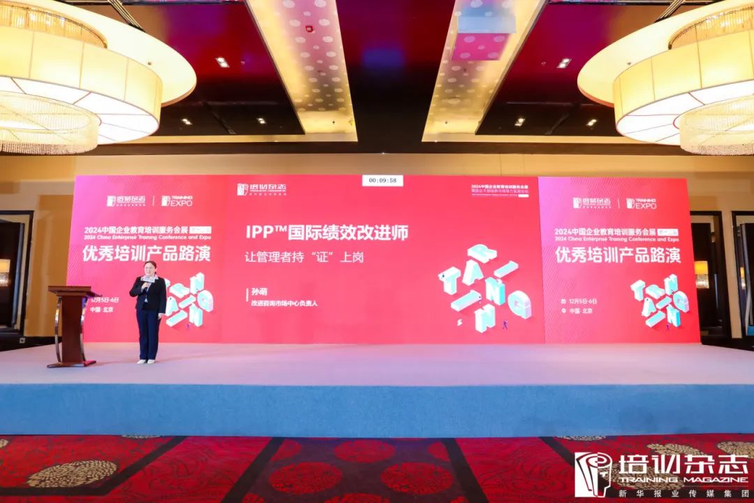 在优秀培训产品路演环节,改进咨询市场中心负责人孙萌带来了《IPP国际绩效改进师》的精彩路演。 本次路演针对企业管理者、HR及学习发展人士当前面临的目标达成难及赋能业务难等痛点,带来了创新有效的解决方案,吸引了不少与会者的咨询交流。 作为拥有自主研发方法论的企业服务机构,改进咨询一直致力于解决客户问题、切实提升企业业绩。 对于过去一年里改进咨询为企业界做出的贡献,主办方《培训》杂志及评委团给予了高度的认可和肯定,并授予改进咨询为“2024-2025最受企业欢迎培训机构”,授予《IPP国际绩效改进师认证课程》为“最佳培训产品”。